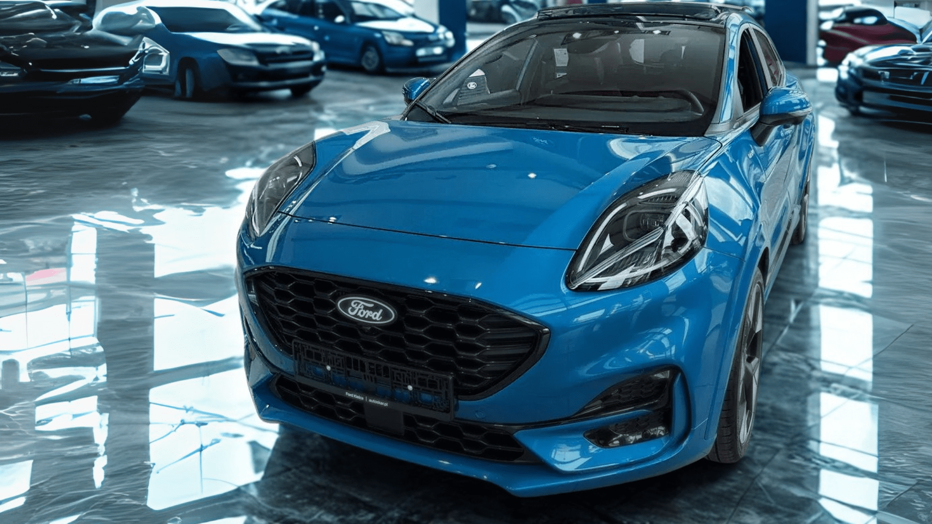 Przed Tobą Nowy Ford Puma w swojej ostatecznej, najbardziej bezkompromisowej odsłonie – ST-Line X z najmocniejszym napędem 1.0 EcoBoost Hybrid o mocy 155 KM i błyskawiczną, automatyczną skrzynią biegów PowerShift. Ten egzemplarz to manifestacja stylu i technologii: od zjawiskowego lakieru Digital Aqua Blue, przez otwierany dach panoramiczny, po inteligentne, matrycowe reflektory Full LED. Wyposażony we wszystkie kluczowe pakiety – Driver Assistance, Winter oraz 4 lata ochrony – jest gotowy, by zaoferować Ci absolutnie wszystko, czego oczekujesz od nowoczesnego crossovera klasy premium.