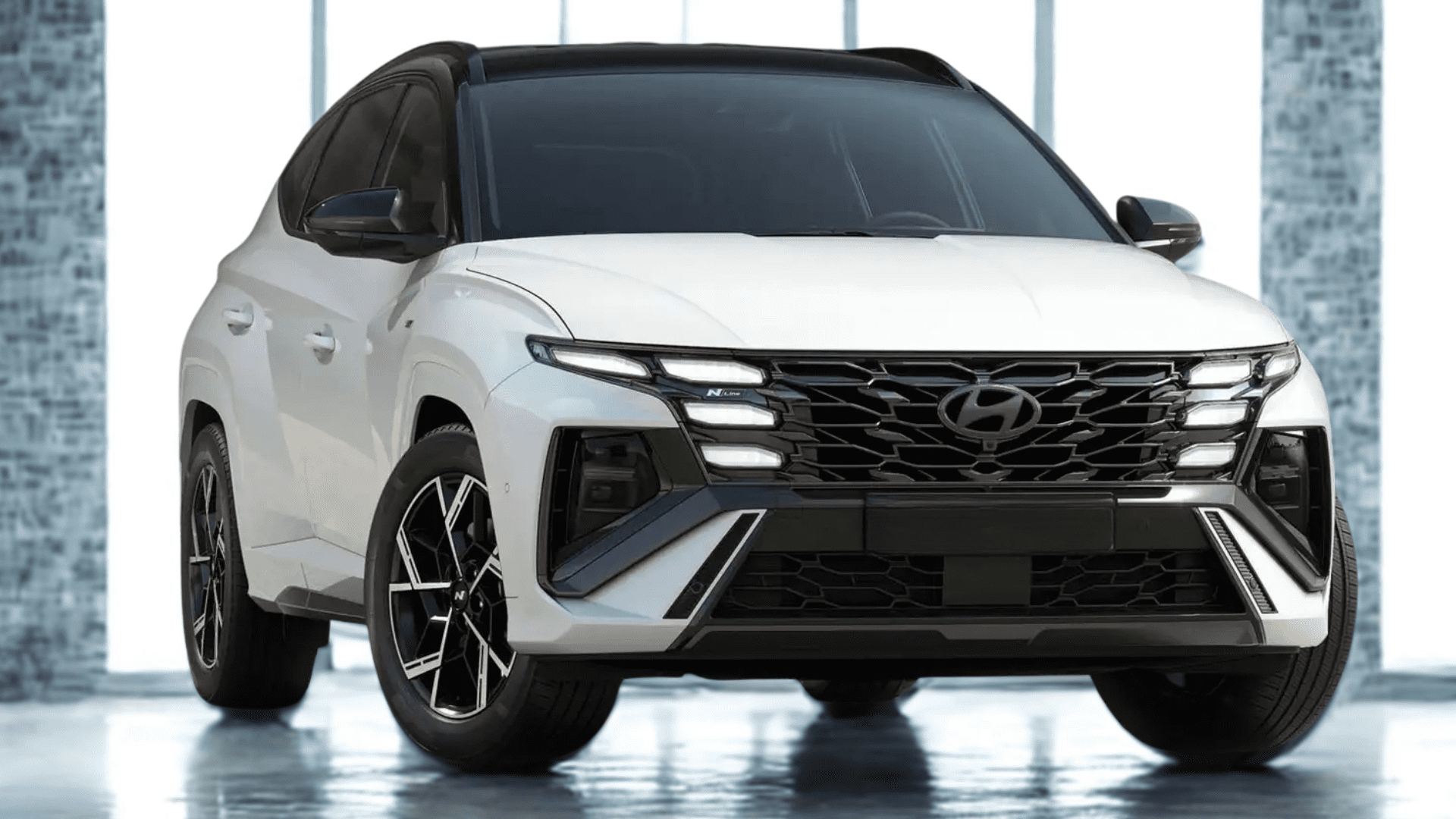 - Unikalna prezencja: Ekskluzywne, dwukolorowe malowanie – perłowy Serenity White z kontrastowym dachem Abyss Black – gwarantuje, że ten Tucson zawsze będzie w centrum uwagi.